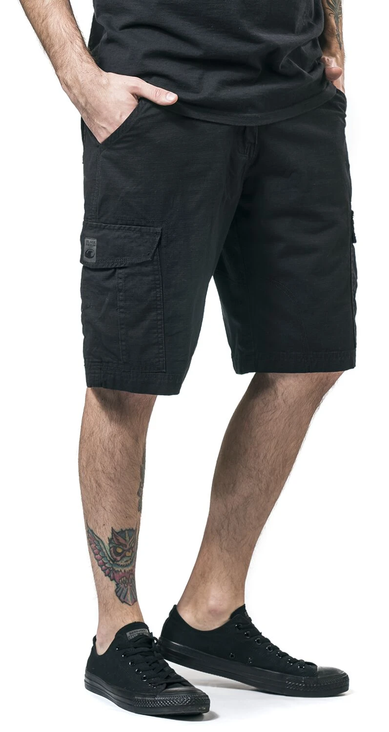 Für die sommerlichen Tage wird dir die Shorts „Army Vinatge Shorts“ in Schwarz von Black Premium by EMP präsentiert. Die Shorts ist in einer sportlichen Cargo Form gearbeitet und mit seitlichen Einschubtaschen für deinen Kram ausgestattet. Praktische Taschen mit Laschen und Druckknöpfen und der Labelpatch aus Stoff runden das Teil gelungen ab.