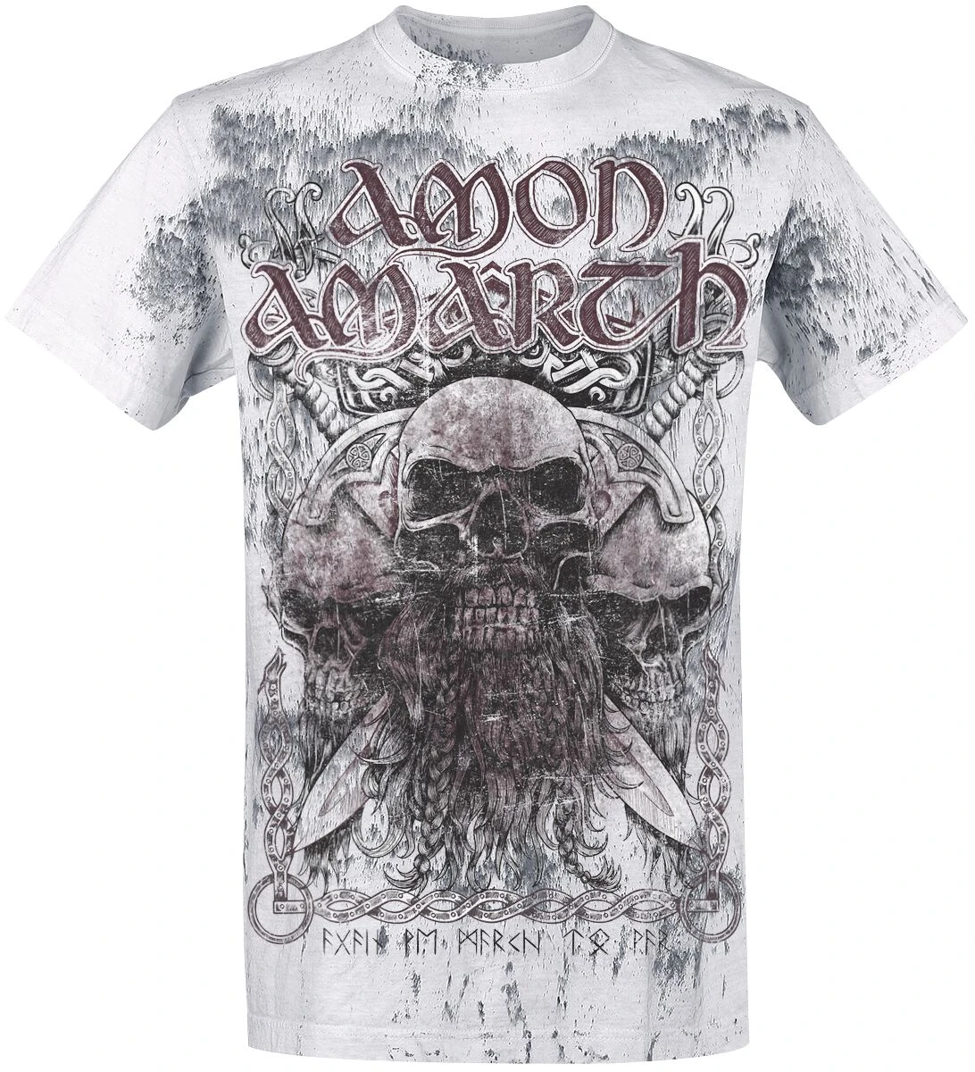 Das T-Shirt Beardskulls von Amon Amarth sieht richtig gefährlich aus. Es handelt sich um ein Batik-Shirt mit Rundhals, das einseitig bedruckt ist. Die interessante Kombination der Farben lässt das T-Shirt fast etwas blutig erscheinen, was ihm den abenteuerlichen Look verpasst.