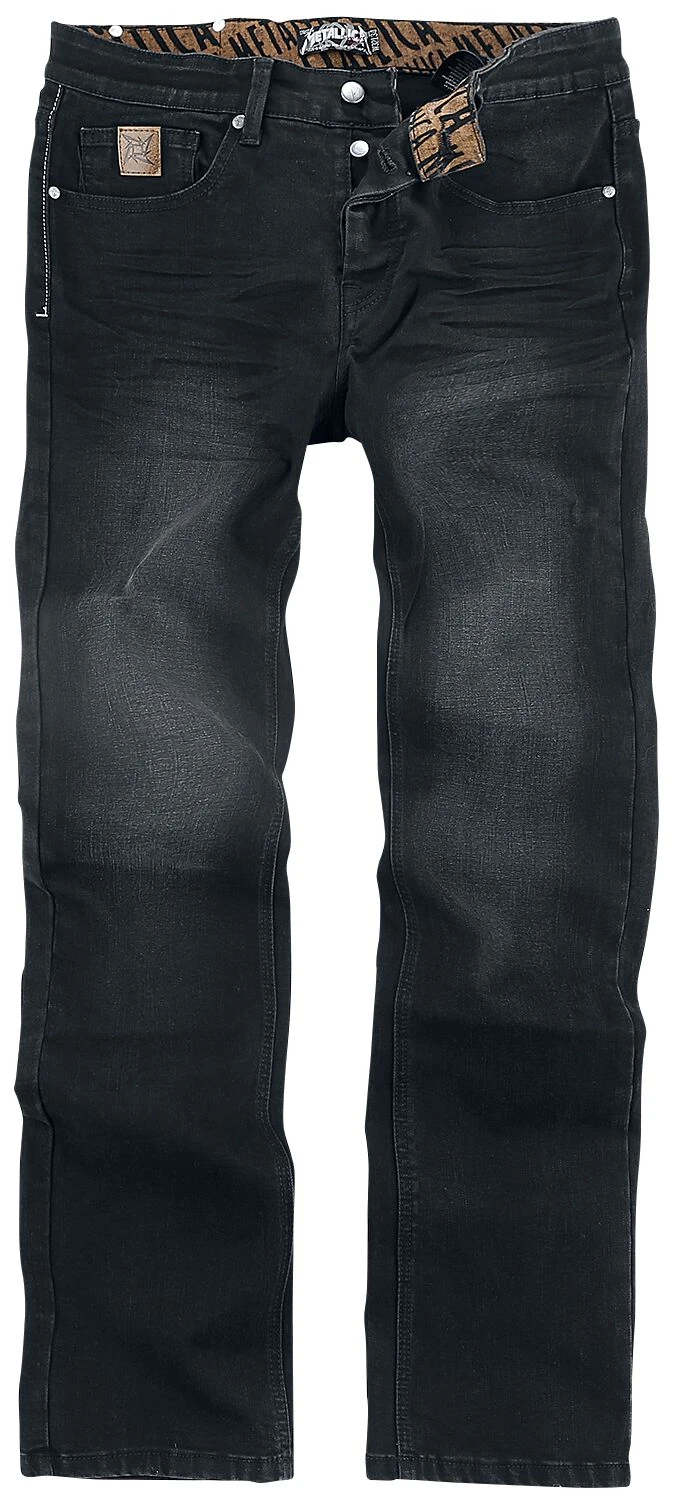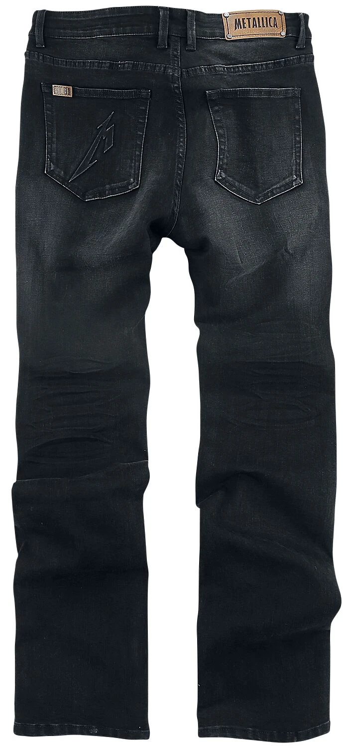 Exklusiv bei EMP: du bist der größte Metallica Fan, hast jede Menge Metallica Shirts im Schrank, kennst das Lieblingsgericht jedes Band Mitglieds auswendig und hast fast kein Live-Konzert ausgelassen? Warum hast du dir dann eigentlich noch nicht die Metallica Jeans aus der EMP Signature Collection gesichert? Mit den lässigen Jeans in Vintage-Optik machst du dein Fan Outfit komplett und sicherst dir ein tolles Kleidungsstück fürs nächste Konzert oder deinen Alltag. Diese Jeans hat so viel zu bieten, man weiß gar nicht wo man anfangen soll: das Bündchen ist bedruckt. Außerdem ist die Jeans mit einem Logo-Knopf, Logo-Nieten und einer Logo-Prägung auf der Gesäßtasche versehen. Auch die geprägten Kunstlederpatches machen ordentlich was her. Zierfalten unterstreichen den Vintage-Stil der Jeans und verleihen ihr eine lässige Note. Der Stoff ist besonders elastisch, wodurch die Jeans besonders gut sitzt.