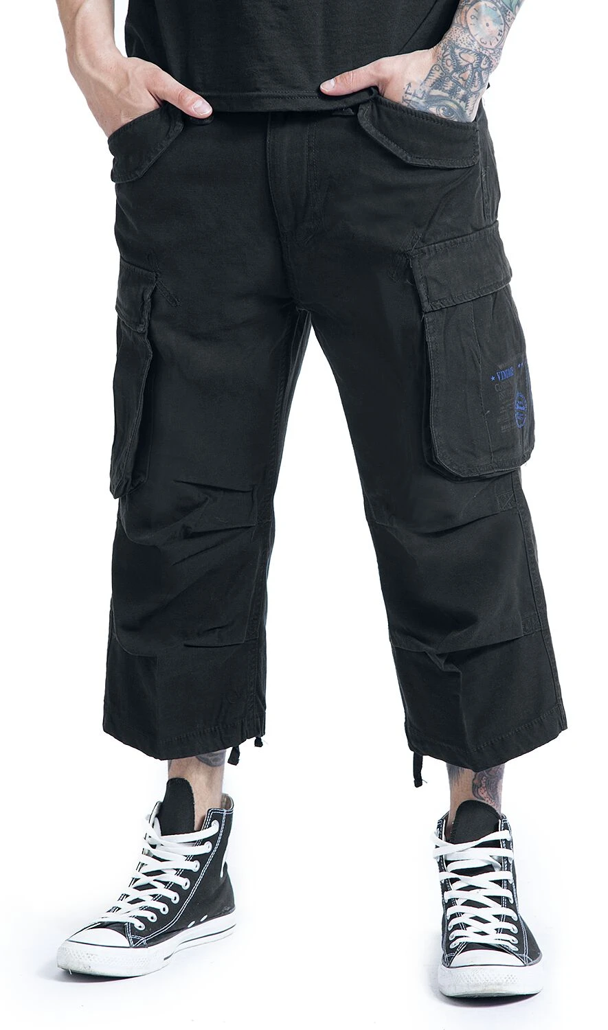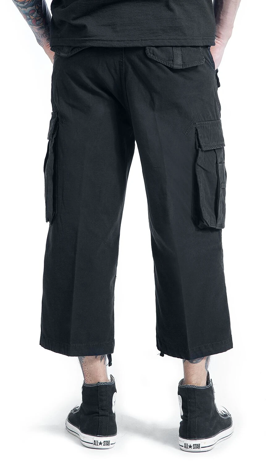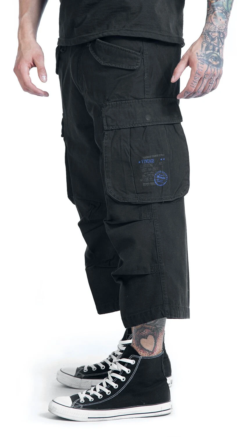 Stylische 3/4 Shorts in 5-Pocket-Form von Brandit mit einem dezenten Print auf der linken Beintasche.