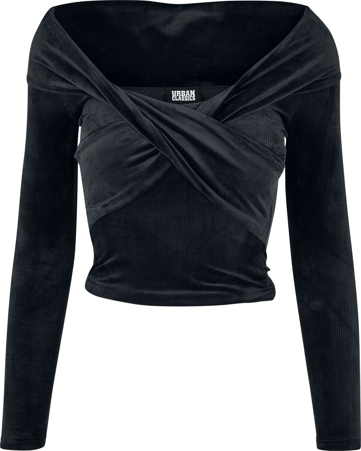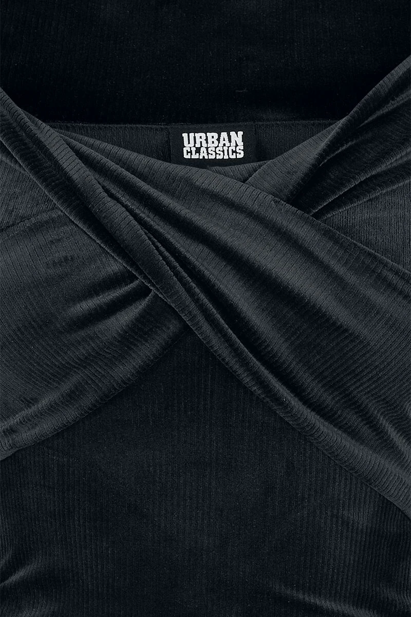„Ladies Velvet Rib Crossed Off Shoulder Longsleeve“ Langarmshirt Schwarz Von Urban Classics