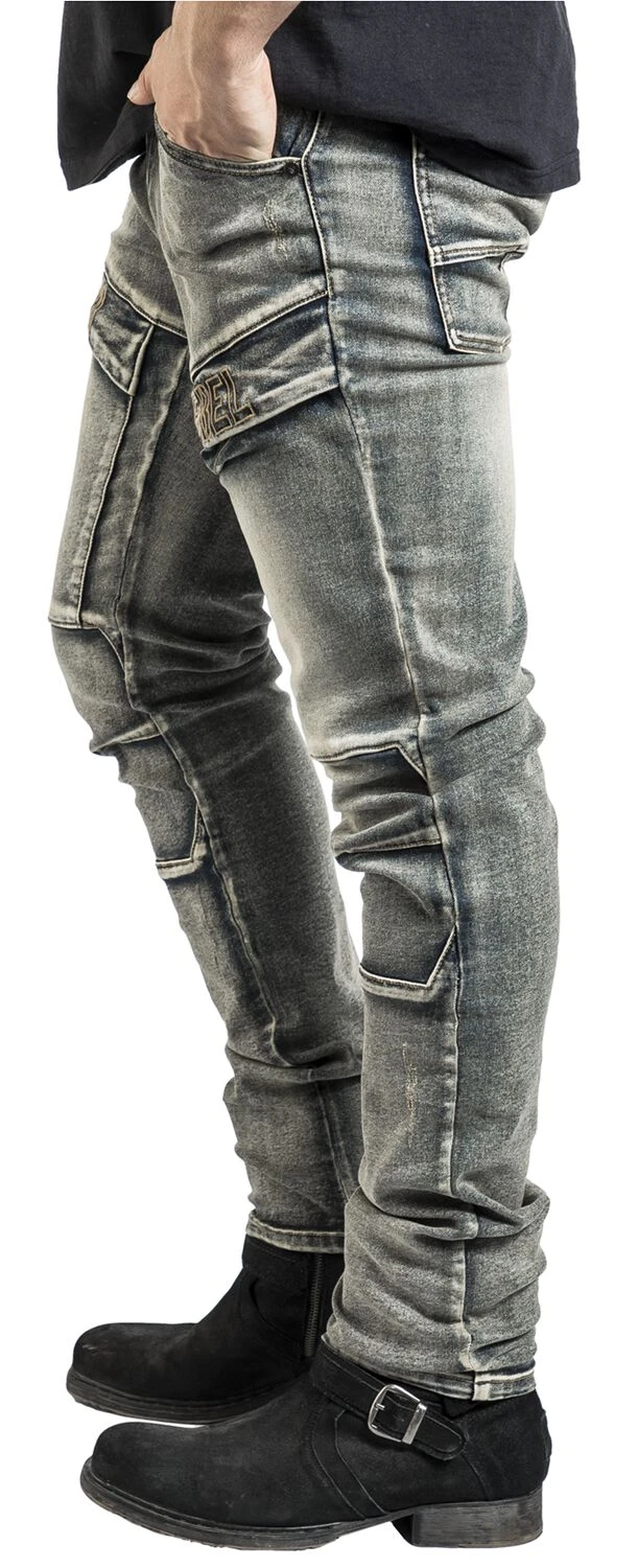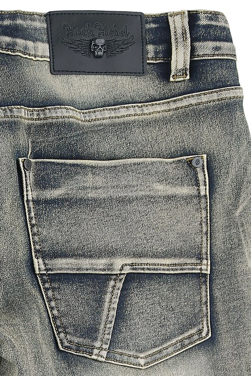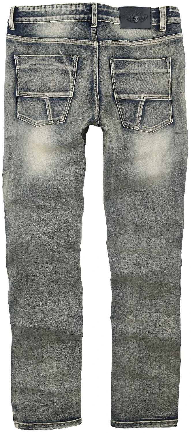– Verschluss: verdeckter Button-Fly mit Knopf im Skull-Design