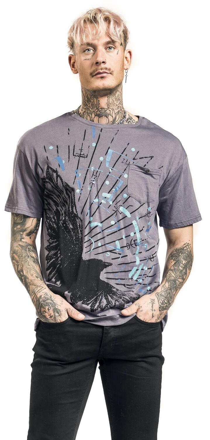 – aufwändiger und detailreicher Frontprint mit Raben und Runen